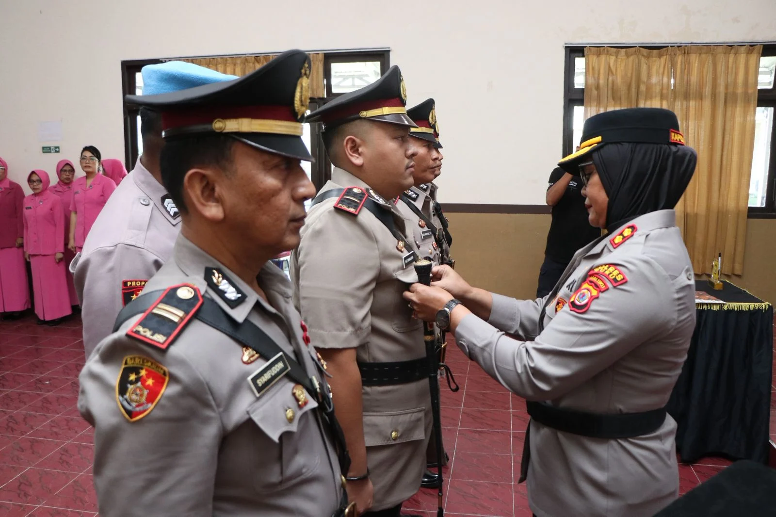 Kegiatan ini turut dihadiri oleh Wakapolres Buru, para pejabat utama Polres, para Kapolsek, personel Polres Buru, Bhayangkari, hingga unsur Brimob, yang bersama-sama menyaksikan momentum penting dalam pembinaan karier personel Polri.