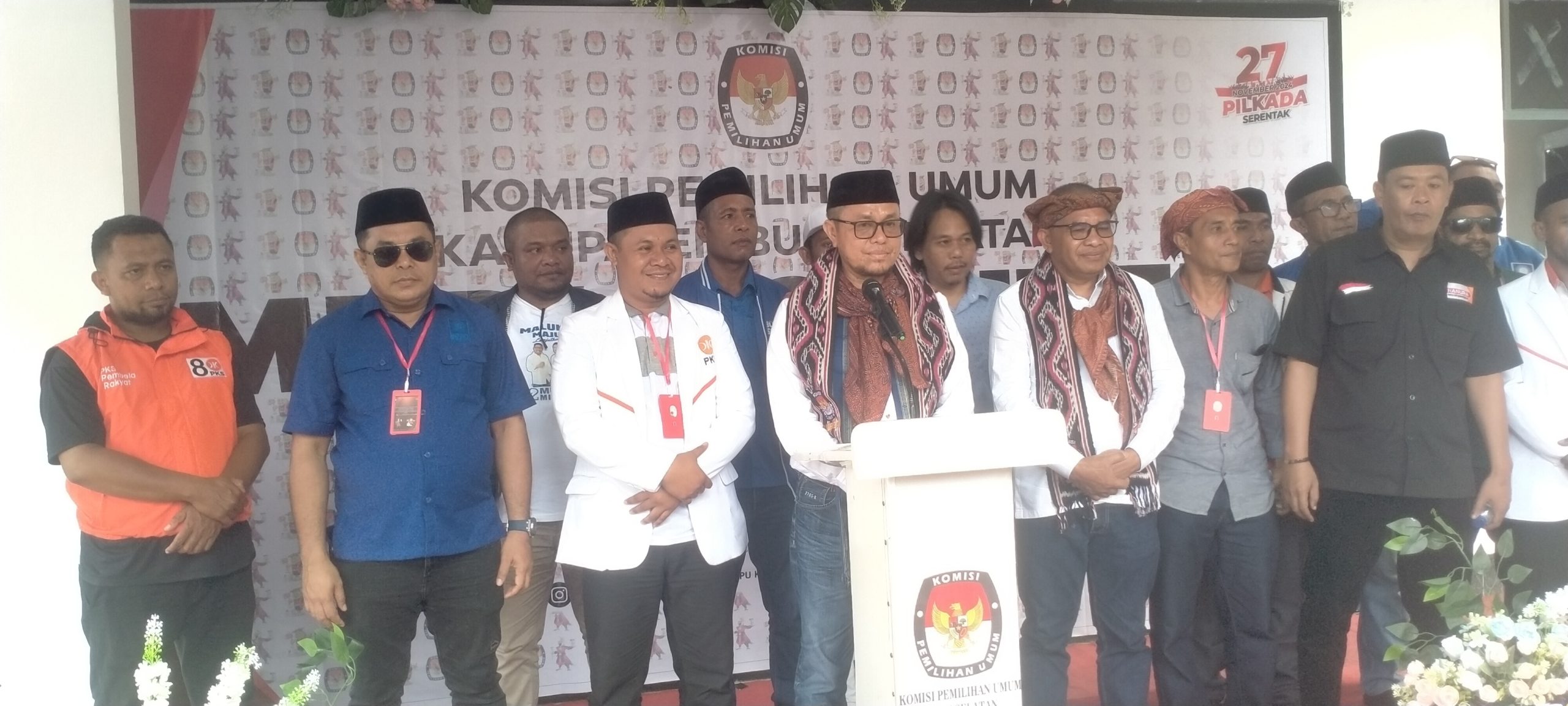 Pasangan Cabup-cawabup Bursel LHM-GES Bersama tim LO, dan para pimpinan partai politik maupun ratusan simpan dan pendukungnya tiba bersama-sama di kantor KPUD Bursel guna mengantarkan pasangan cabup-cawabup Bursel LHM-GES untuk mendaftar dirinya sebagai Cabup & cawabup Bursel pada pilkada serentak 2024.